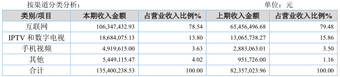 公司主营业务为影视动漫和幼教IP的全版权代理业务与投资制作业务。拥有《蜡笔小新》、《哆啦 A 梦》、《精灵宝可梦》、《丁丁历险记》、《加菲猫》、《三国演义》等国内外优秀动漫、幼教节目的独家权利,报告期内除代理原有的动漫节目外,公司还增加了幼教节目的产品线,引进了《巧虎》、《躲猫猫》等海外优质幼教节目。