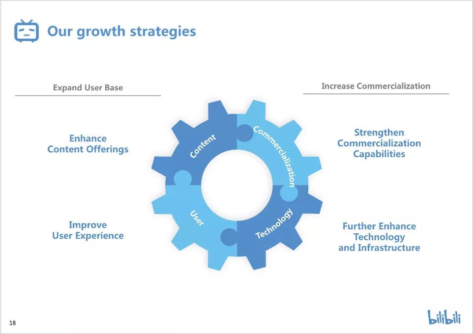 在原创内容领域,爱奇艺将招聘顶级人才,系统化制作现象级的原创内容,加强与上游产业参与者的关系。在技术创新上,爱奇艺将利用人工智能和大数据制作内容、增强娱乐体验、推出内容推荐、服务广告主和内容合作伙伴。在内容提供生态圈,爱奇艺将扩大长尾内容覆盖,增强爱奇艺合作伙伴账户的数量,进一步开发新媒体格式的内容。在用户基数上,爱奇艺将增加对不同年龄群体的用户的吸引力,提供卓越、个性化的体验,加强内容发布。在货币化渠道上,爱奇艺将增加付费用户的渗透率,建立多层付费用户系统,扩大In-Feed广告服务,发展其他的货币化渠道。