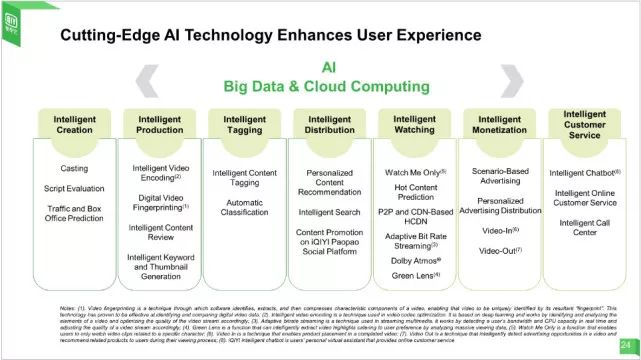 通过人工智能、大数据和云计算,爱奇艺具备了智能创作、智能产出、智能标注、智能发布、智能观看、智能货币化和智能客户服务的能力。