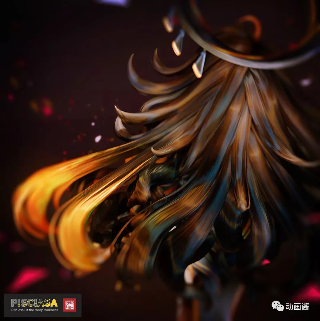 Pisciasa的创作灵感来源于作者的星座——双鱼座,这是一种只有在海底才能找到的鱼,画面中有两条鱼在Pisciasa四周游动。