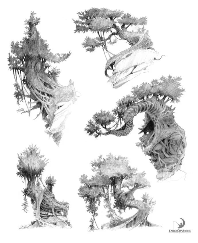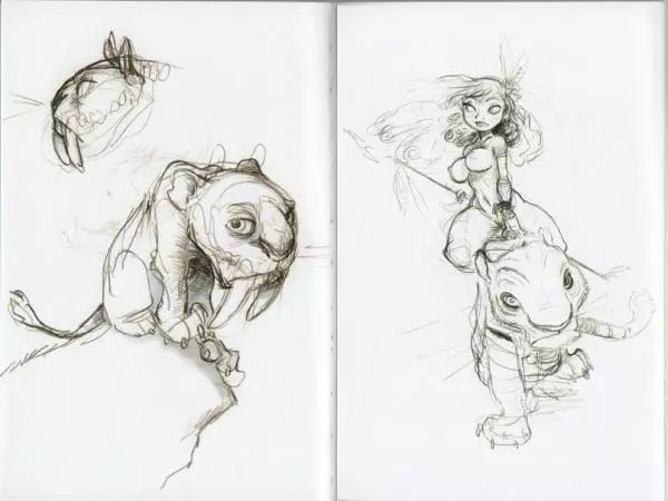 《疯狂原始人》的艺术创作是由400块概念设计、人物素描、故事版和数字绘画构成。3D动画《疯狂原始人》 设计师速写本