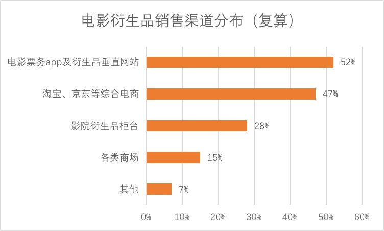 与线下实体店铺相比,用户更喜欢通过电影票务 app 以及衍生品垂直网站等网络渠道购买电影衍生品。