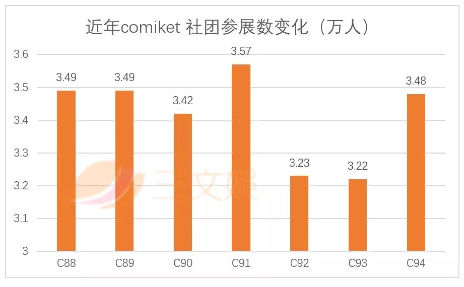 本次Comic market有3.48万个社团/个人参展,三天内共53万一般参加者到场,其中第一天16万人,第二天16万人,第三天21万人。Comiket时隔两年再次回归正常规模。