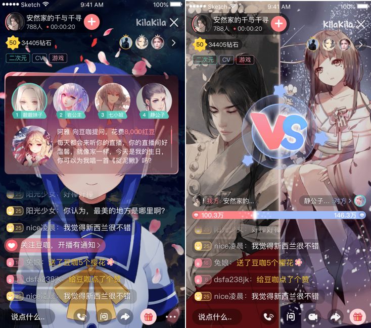 近期数据显示,国内二次元产业市场规模于2017年破1000亿元,用户规模已经超过三亿人,这个群体正在成为直播平台发力的新方向。头部直播平台虎牙、斗鱼,陌陌纷纷布局二次元市场,在其原有的游戏、秀场直播基础上,开设二次元直播频道,企图打开新市场。异军突起的语音直播平台KilaKila则把二次元作为其主要发展方向,另辟蹊径闯出了一片新天地。
