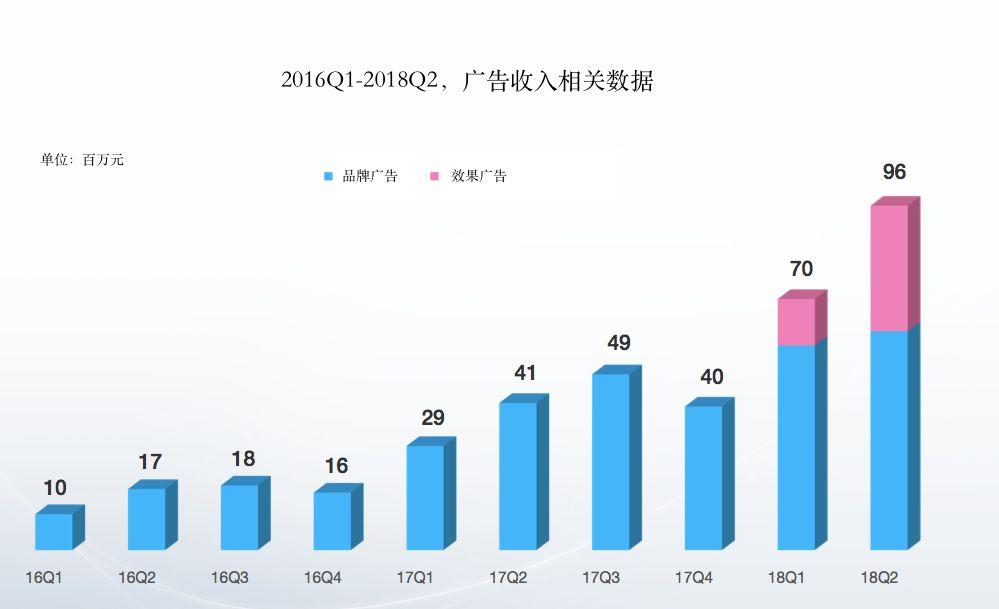 B站广告业务在二季度收入达9586万元,同比增长132%,其中年度开始推广的效果类广告收入占比超过1/3。在电话会议上,陈睿表示二季度B站广告主环比增长超过了100%。
