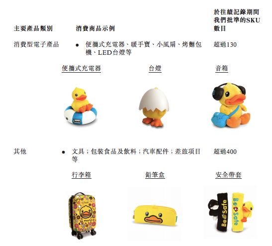 招股书显示,小黄鸭目前在微博、 Facebook、抖音、微信、Instagram、Line及Youtube等多个社交网络平台建立一个拥有超过300万人的社群,有关小黄鸭家族角色元素的内容的观看次数超过1.7亿次。