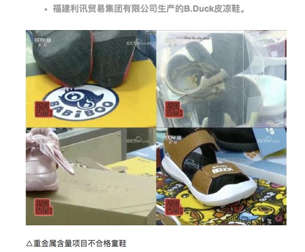 版权方的品控并非万能,利讯集团的小黄鸭童鞋还被中央电视台曝光过。