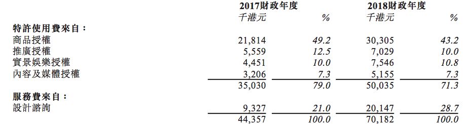 截至2018年末,德盈国际已向被授权方提供超过520项风格指引,以确保其产品、内容及服务妥善应用他们的IP、维护他们的品牌形象。设计咨询服务合约一般不会超过12个月。