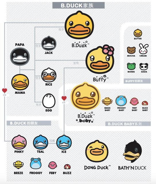 在最初借力于世界知名事件创作出IP之后,小黄鸭家族也在推出新角色—身份是小黄鸭的亲人或朋友,版权方希望以此顺利的延展,并让新角色能借力于小黄鸭启动人气。