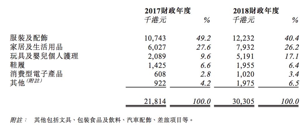 这些商品,例如文具、包装食品及饮料等,产量最大的还是服装及配饰,2017-2018年有超过4000个SKU。
