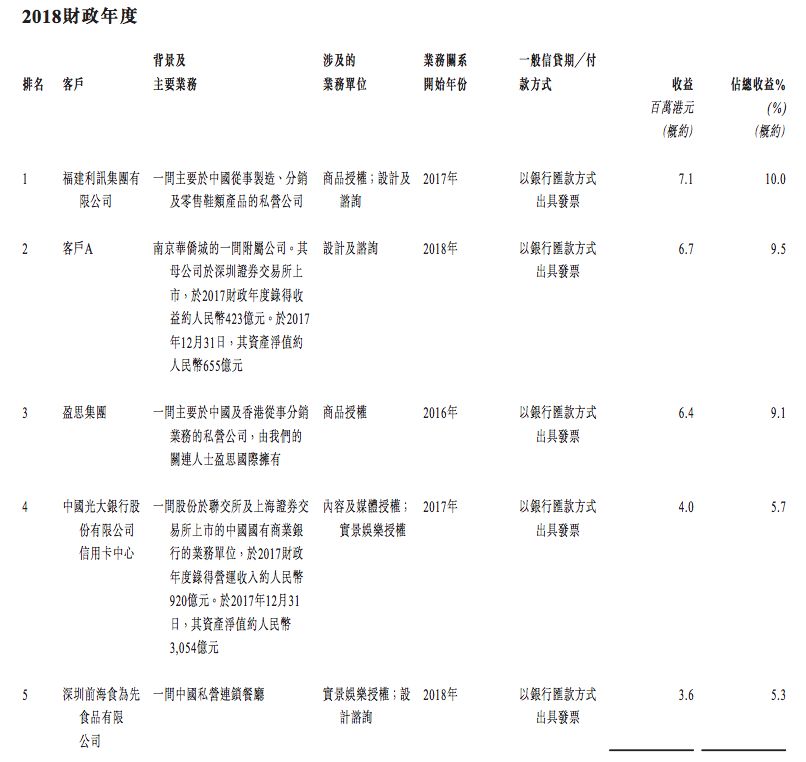 德盈国际的最大客户也来自服装及配饰品类,2017与2018年第一客户均是福建泉州鞋企利讯集团。