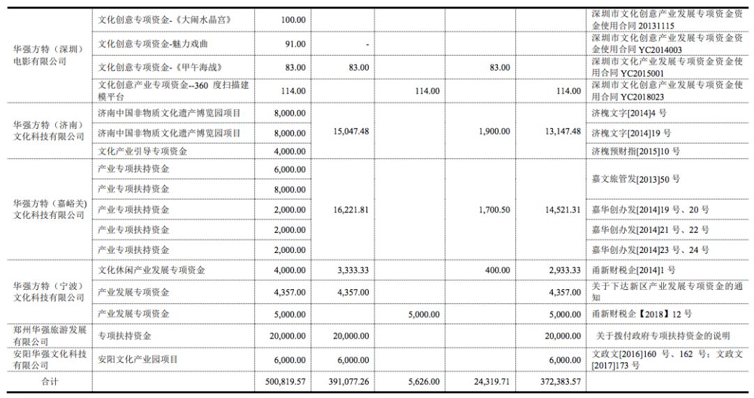 华强方特2018年度非经常性损益净额约3.3亿元,包括3.27亿元的计入2018年度的政府补助。