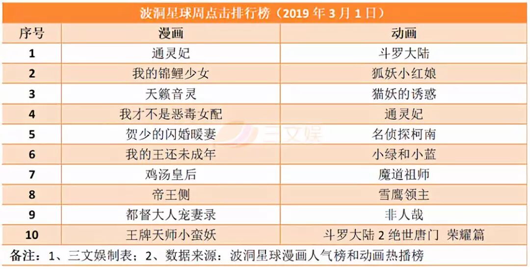 波洞星球漫画方面,截止到3月1日,榜单变化幅度不大。肉肉创作的《通灵妃》依旧排名第一,周人气值为4.12亿。新晋榜单《鸡汤皇后》是一部穿越漫画,本周人气值为1.58亿,排名第七。新晋榜单《王牌天师小蛮妖》是蔷薇事务所创作出品的恋爱漫画,本周排名第十,周人气值为1.11亿。