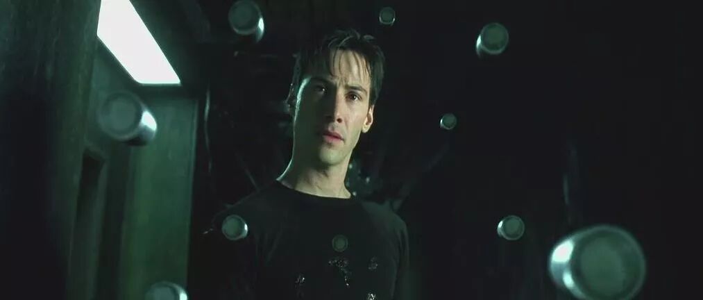 1998年夏末,拍摄的最后一天,里维斯几乎赤身裸体地躺在一个巨大的科技舱里,而这个场景正是影片中尼奥的所有能量被机器人吸走的时刻,这也是《黑客帝国》中最残酷的现实。