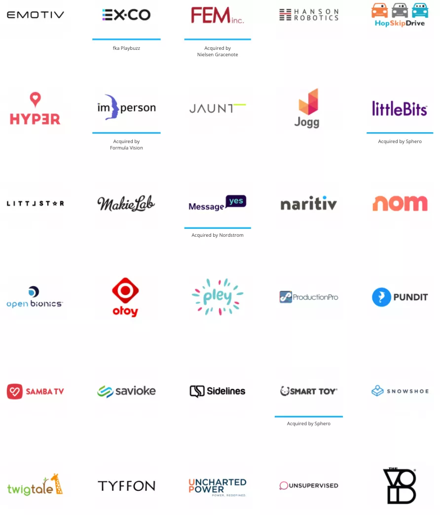 Sphero是第一期学员,融资14轮,共计近1.49亿美元,最新一轮融资在2019年5月25日。Sphero有11个投资方,最新投资的是 Mercato Partners和华特迪士尼公司(不是迪士尼加速器而是公司总部)。