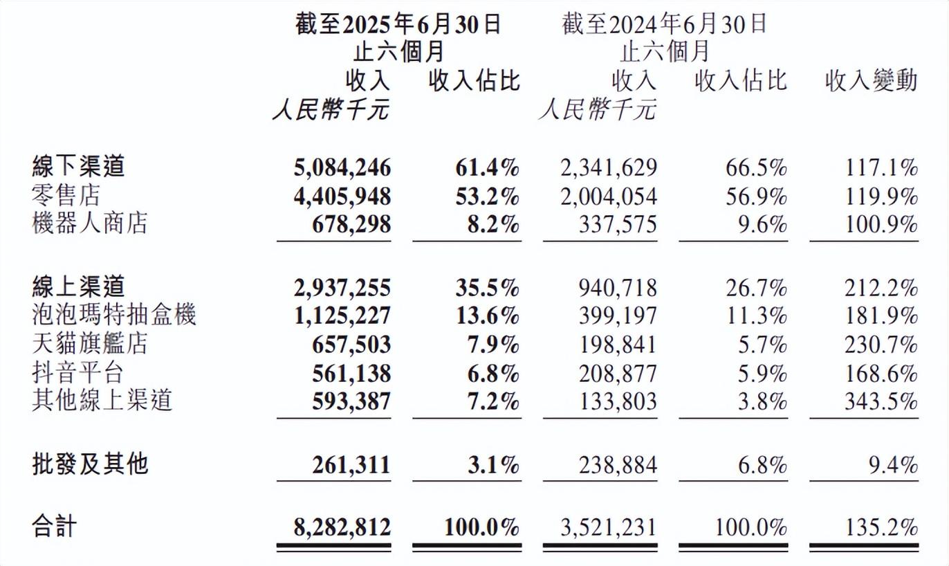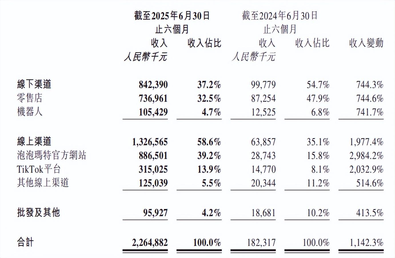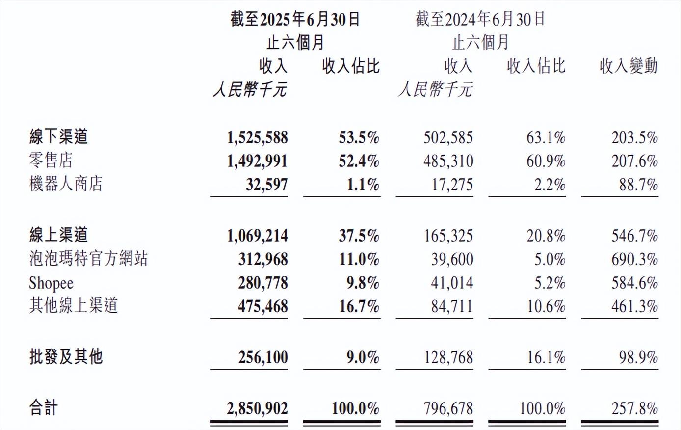 亚太地区,泡泡玛特2025上半年28.51亿收入中,52.4%来自零售店,11%来自官方网站,9.8%来自Shopee;零售店从去年同期的39家增长到今年上半年的69家。