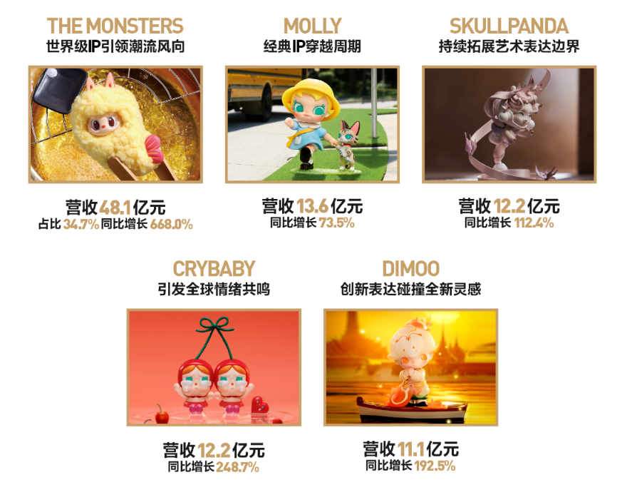THE MONSTERS可口可乐系列搪胶脸盲盒、SKULLPANDA冬日乐章系列毛绒盲盒、CRYBABY眼泪工厂搪胶脸毛绒盲盒、CRYBABY怪兽的眼泪系列、《哪吒之魔童闹海》天生羁绊系列、 THE MONSTERS慵懒瑜伽系列、SKULLPANDA冬日乐章系列毛绒盲盒、 SKULLPANDA 温度系列、LABUBU慵懒瑜伽系列、星星人 我们都是星星人毛绒盲盒、小野Hirono×Le Petit Prince系列、DIMOO梦里梦外系列。