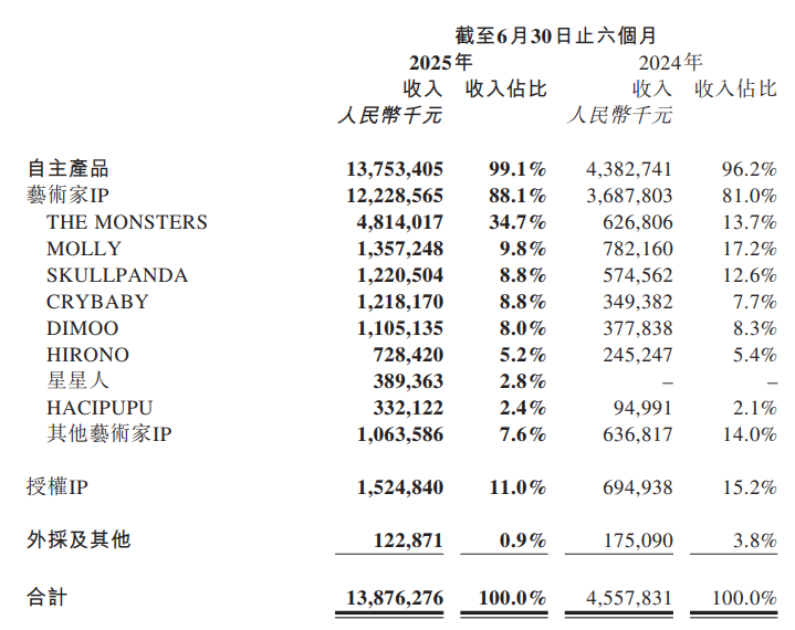 泡泡玛特表示,THEMONSTERS家族中的LABUBU跻身世界级IP行列,上半年LABUBU第三代搪胶毛绒“前方高能”系列一经推出,便在全球各大国家和地区掀起热潮,“怪味便利店”系列手办也深受粉丝青睐。
