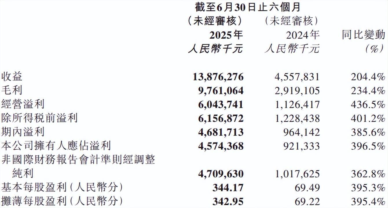 8月19日,泡泡玛特发布2025上半年业绩,其收入约人民币138.76亿元,同比增长204.4%;净利润约46.82亿元,同比增长385.6%。