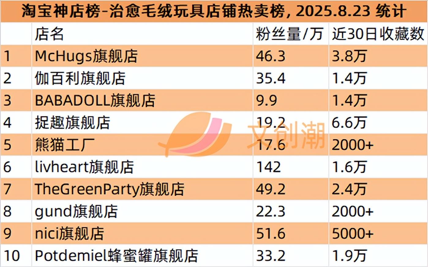 治愈毛绒玩具店铺热卖榜,前五名分别是:
