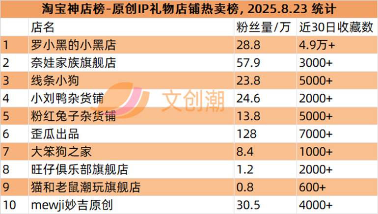 罗小黑的小黑店、奈娃家族旗舰店、线条小狗、小刘鸭杂货铺、粉红兔子杂货铺。