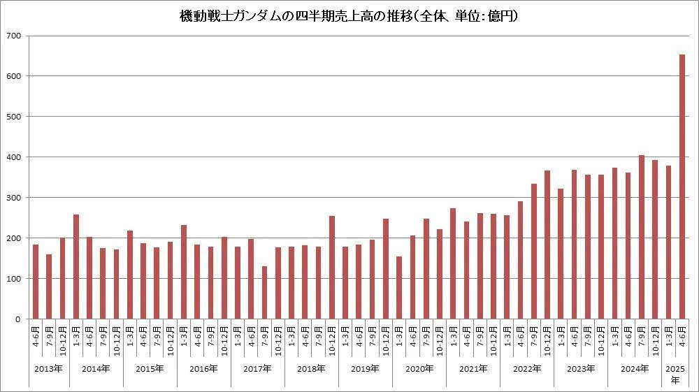 这主要得益于4月份全新电视动画作品《机动战士Gundam GQuuuuuuX》开播,以及大阪关西世博会“高达未来馆(Gundam Next Future Pavilion)”开幕,使得高达IP热度再上新台阶,成功扩大粉丝群体。