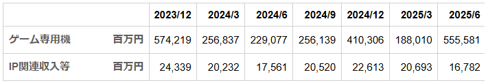 其中,主机游戏(包括软硬件)销售额7435亿日元,同比增长53.02%;IP关联收入(包括影像、智能设备端收费、版权、官方商店周边)销售额374亿日元,同比下降0.8%,虽然5月在美国新开设了线下店铺,角色商品销售保持增长,但《超级马力欧兄弟大电影》相关影像内容收入逐渐下降,导致同比收入下降。