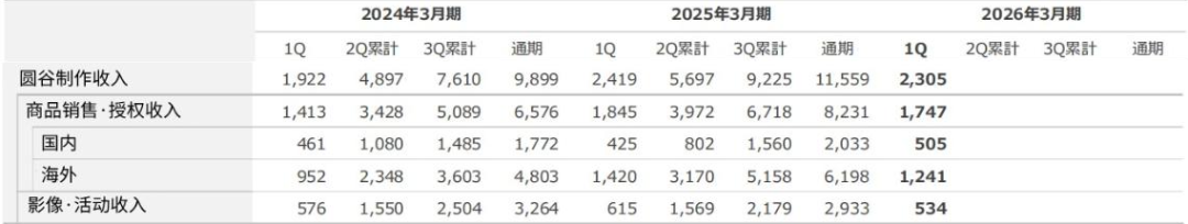 其余事业如影像、商品等,因去年同期有《咯咯咯鬼太郎》《灌篮高手剧场版》等热门作品,均同比下降。