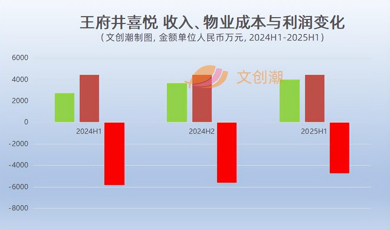 2025上半年,王府井喜悦规模销售额同比增长近48%,累计客流量突破610万人次,同比增长近30%。虽然上半年的3990万元营收还是没能覆盖4435.03万元的租金与物业管理费用,但亏损已经大大改善。