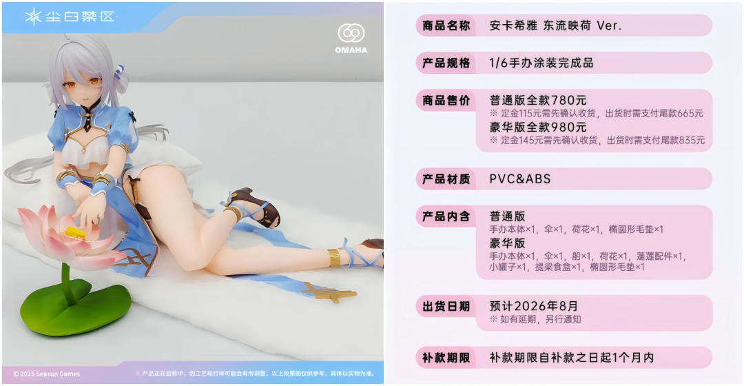 再来看看手办的情况,西山居《尘白禁区》游戏的旗舰店发售的OMAHA安卡希亚东流映荷手办,销量3000+排在第一。