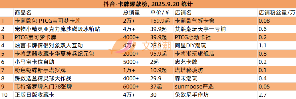 抖音卡牌爆款榜首是PTCG宝可梦卡牌。