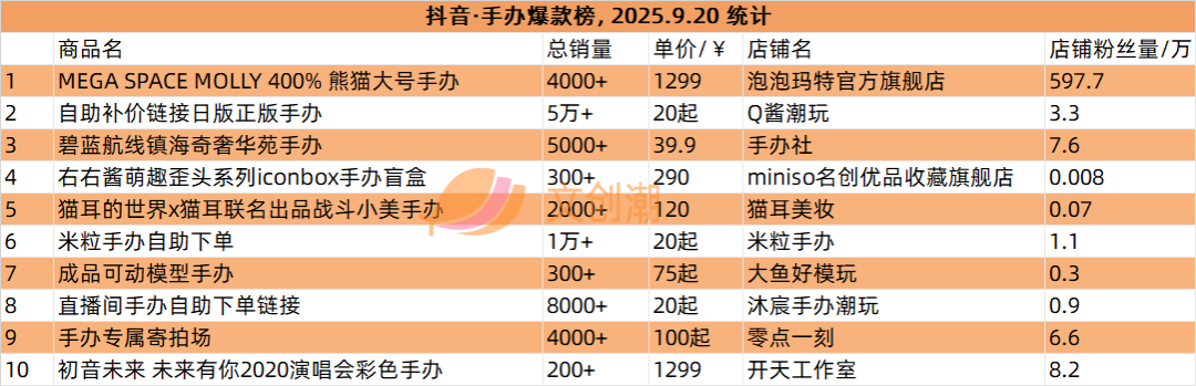 抖音手办爆款榜首是MEGA SPACE MOLLY 400% 熊猫大号手办。
