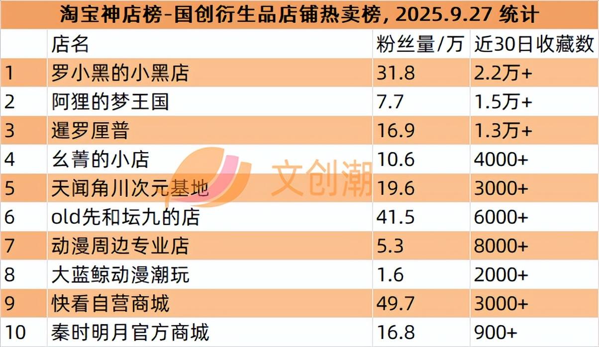 国创衍生品店铺热卖榜,前五名分别是: