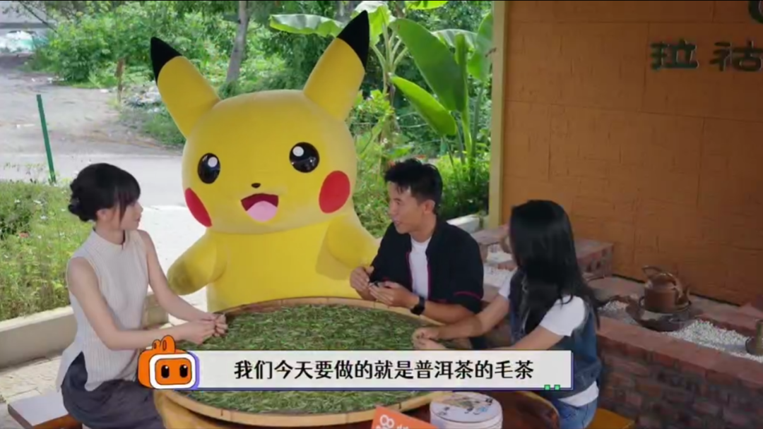 其中,宝可梦的探索形式是让嘉宾和皮卡丘一起到访中国云南的普洱,体验各种非遗文化。其中包括普洱的炒茶,扎染,鲜花饼制作等等。“通常海外IP的合作流程会长达半年以上,而与宝可梦的合作,从确认合作到最终日本总部监修完成,全程仅用了3个月。”