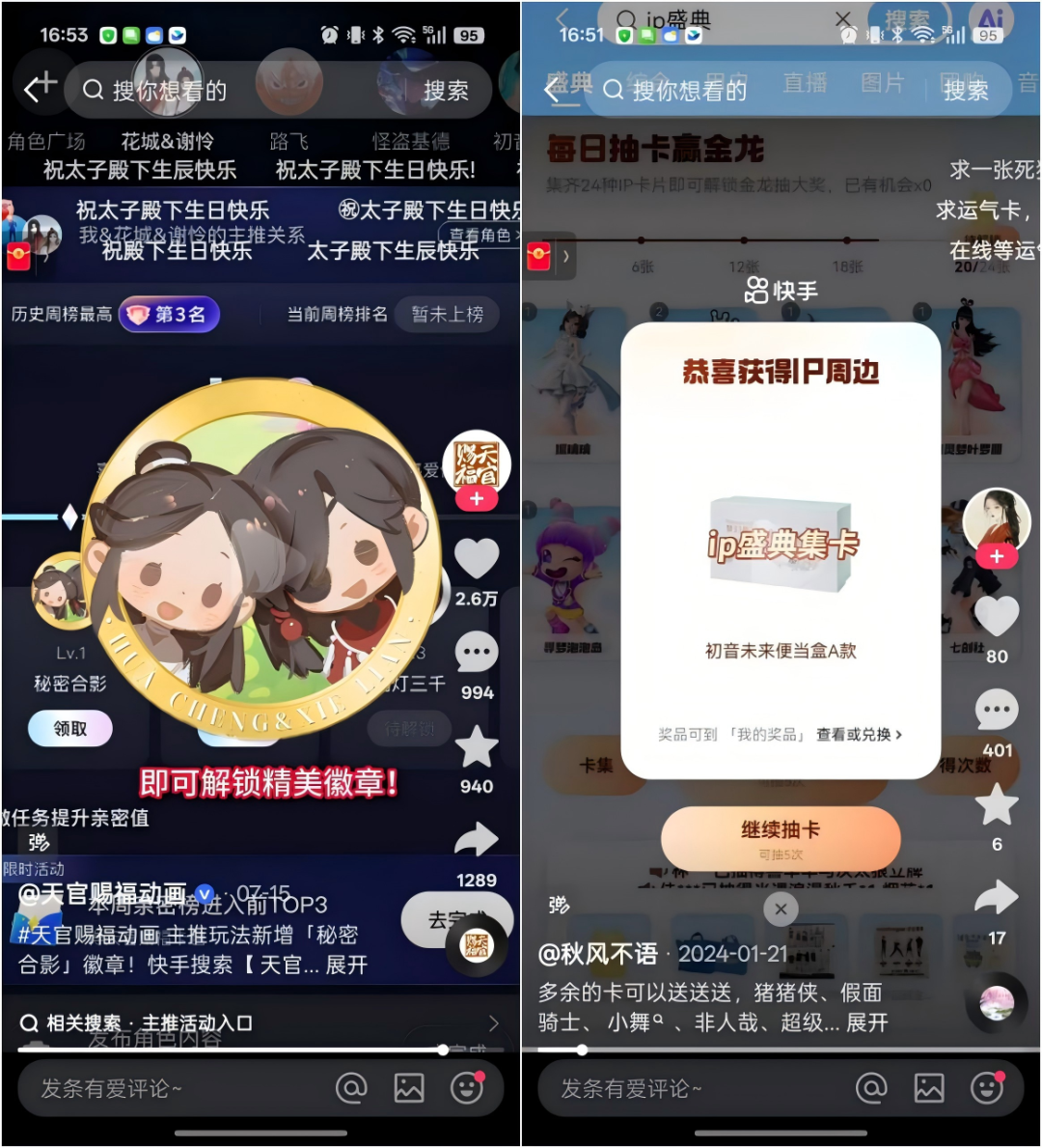 如今,在快手生态中,IP已不再是简单的流量符号,而是成为了连接平台、用户与内容的情感纽带。通过持续的内容创新与产品深耕,快手正在证明:真正的IP运营,不仅是引入明星IP,更是要成为培育IP价值的沃土,让IP成为用户最重要的“社交货币”和“情感寄托”,让每一个热爱都能在这里找到归宿。