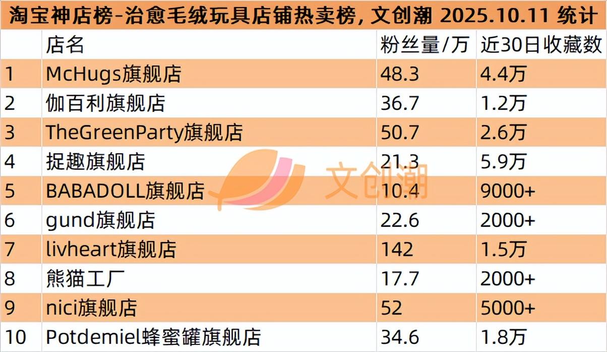 治愈毛绒玩具店铺热卖榜,前五名分别是: