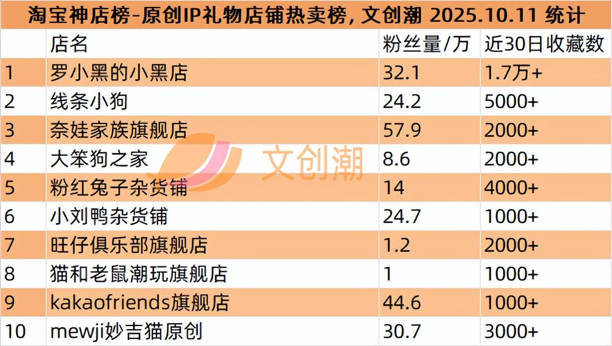 罗小黑的小黑店、线条小狗、奈娃家族旗舰店、大笨狗之家、粉红兔子杂货铺。