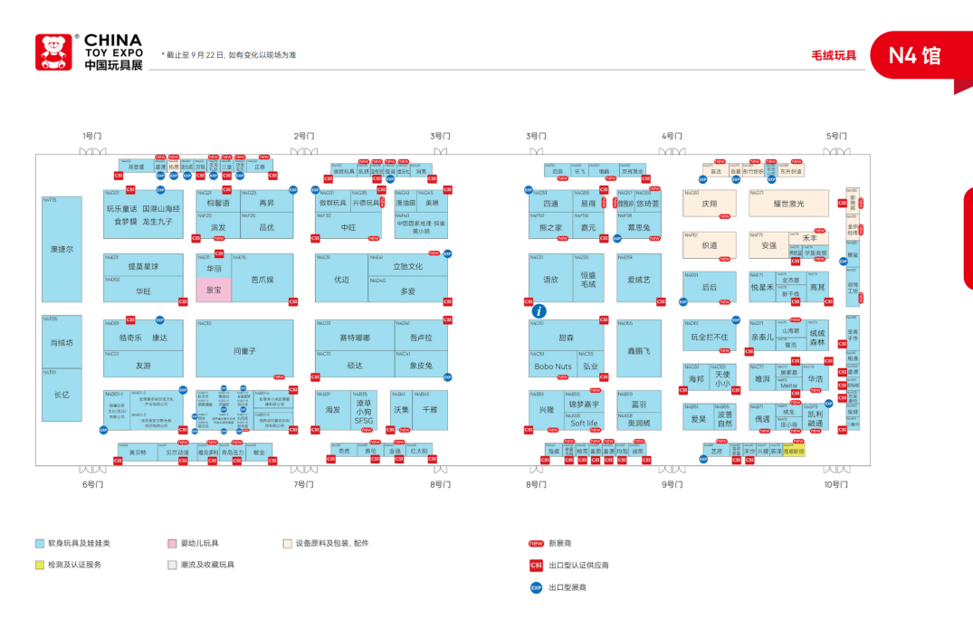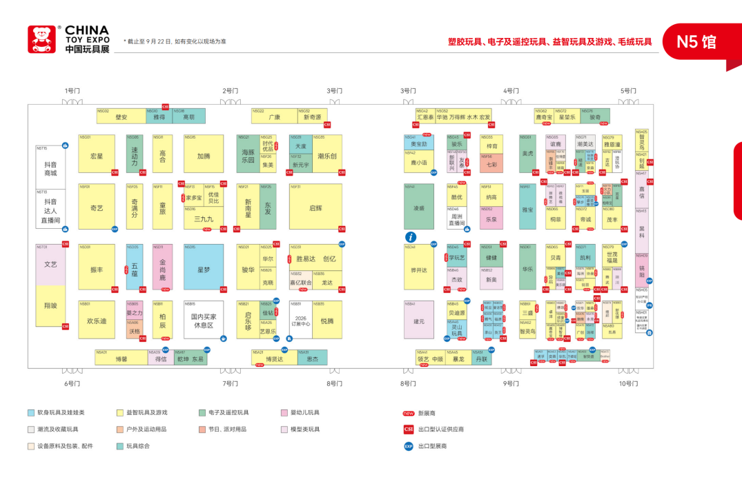 CTE中国玩具展&潮玩展,场馆包括新国际博览中心N1-N5、E7-E5、W5-W4,以下是展位图。