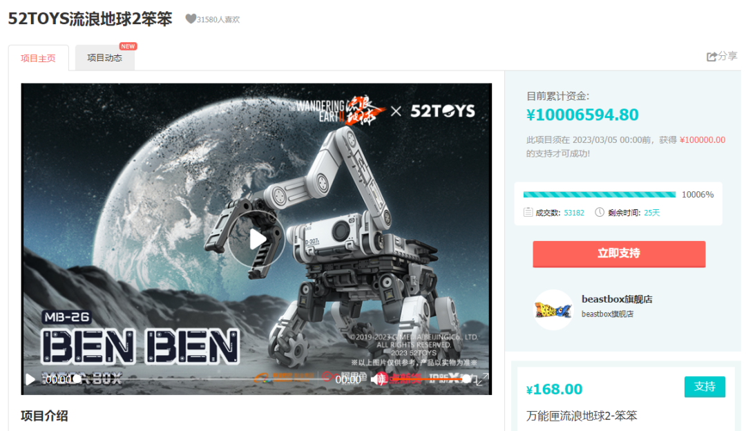 此前52TOYS与《流浪地球2》的联名产品包括笨笨机械狗、门框机器人等,销售之所以火爆,很大程度上也是因为猛兽匣能够准确表达IP原作的科幻内核,满足用户对收藏品的功能与情感需求。