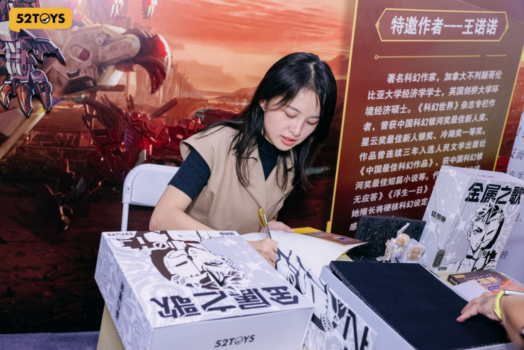 10月2-3日举行的2025上海Wonder Festival(WF),首部官方小说《猛兽匣:金属之歌》珍藏版首度亮相,小说作者、曾荣获中国科幻银河奖最佳新人奖的科幻作家王诺诺亲临签售,现场等候及购买的粉丝排起长龙。