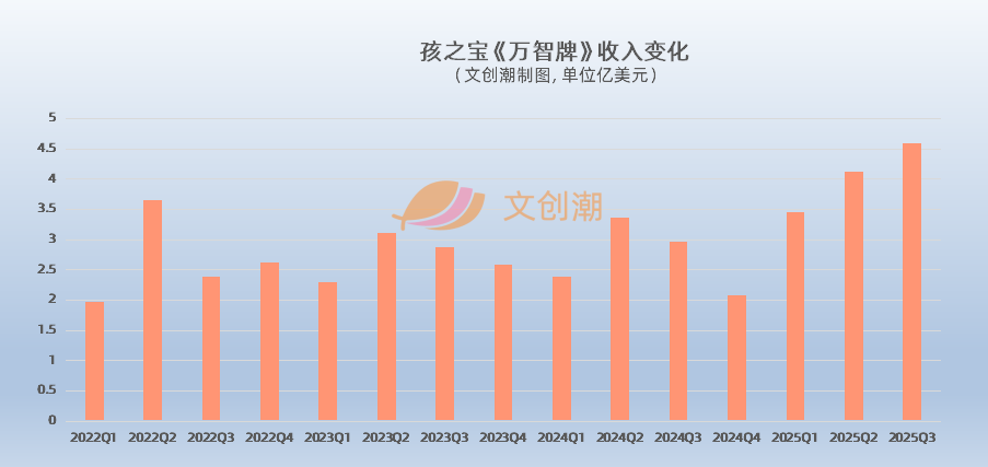 10月23日,孩之宝发布2025年度第三季度业绩,其收入13.88亿美元,同比增长8%;净利润2.33亿美元,比去年同期多了1千万。