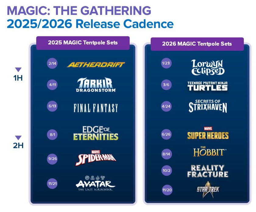 今年9月,《万智牌》推出《漫威蜘蛛侠》联名,11月将与动画《降世神通:最后的气宗》联名,未来计划与《忍者神龟》《霍比特人》《星际迷航》《漫威超级英雄》等IP进行联动。