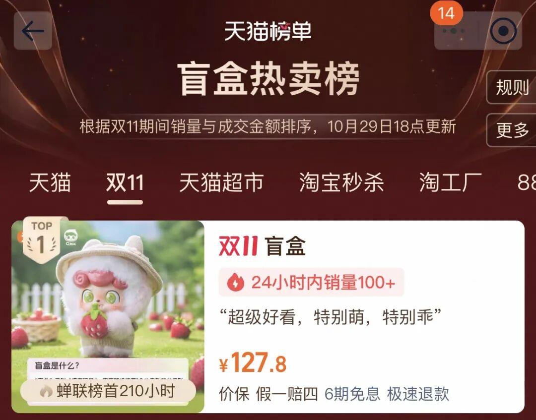 1000万+观看直播,销量数万,天猫双11盲盒热卖榜连续多日蝉联第一……