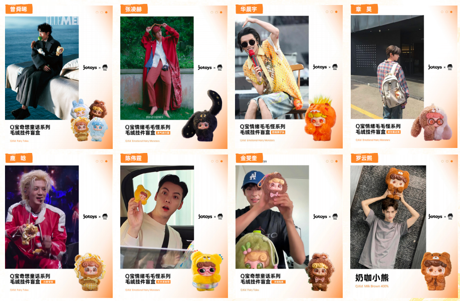 2025年,华晨宇、张凌赫、曾舜晞、SANA、李佳琦、罗云熙、鹿晗、金旻奎、文俊辉、马思超、章昊、谢兴阳、杨舒予、杨力维、王博文等明星,陆续公开分享Q宝新品,引发粉丝效仿和争相求购同款。这种有机传播,不仅降低获客成本,更赋予IP时尚属性,加速Q宝从潮玩圈层向大众市场的渗透。