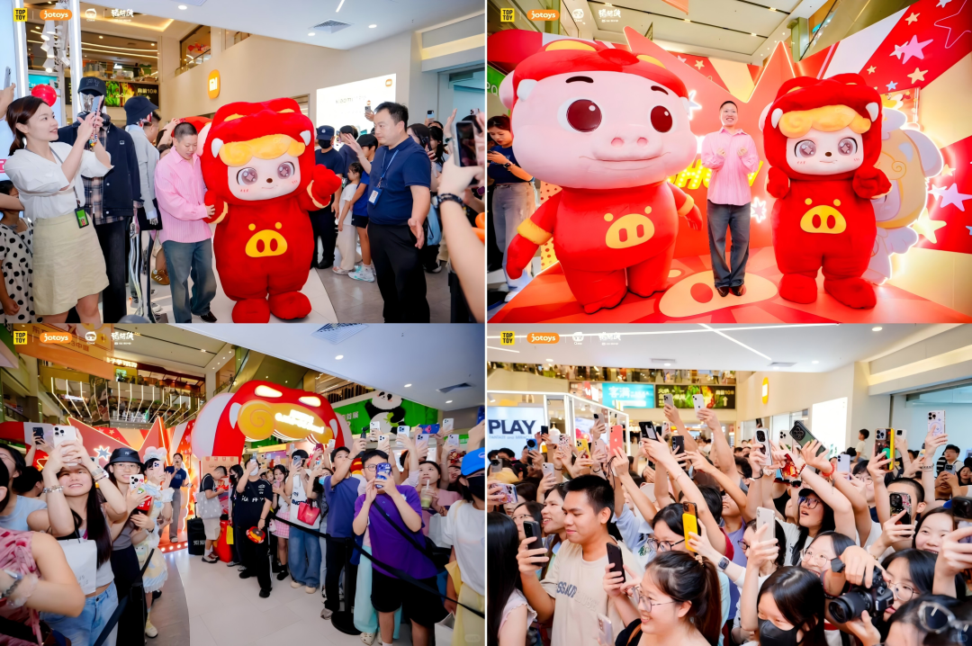 其中,在广州东方宝泰落地的“超萌猪队友”快闪,从美陈装置、互动玩法到用新品的设计语言,全部基于对双方IP特质的深入理解而展开,携手传递欢乐。
