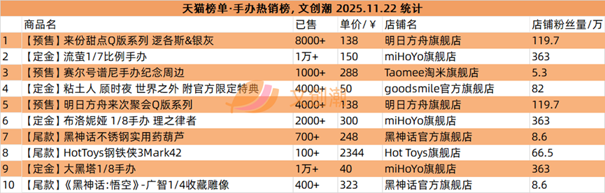 本期我们继续观察盲盒与手办的爆款产品,随后各类文创产品与店铺表现。