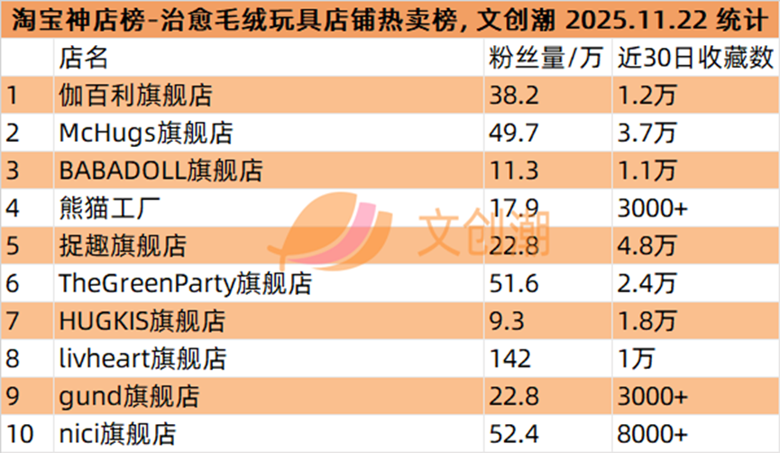 治愈毛绒玩具店铺热卖榜,前五名分别是: