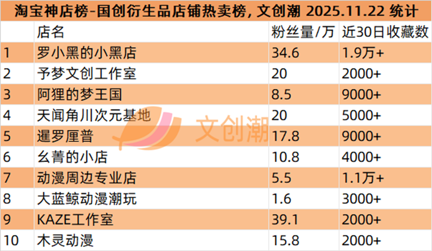 罗小黑的小黑店、予梦文创工作室、阿狸的梦王国、天闻角川次元基地、暹罗厘普。