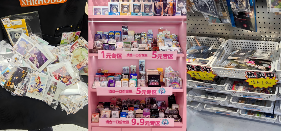 与此同时,谷子的消费者发现,此前他们原价甚至溢价抢购的吧唧或立牌,最近纷纷七折、五折、三折、一折,甚至被放进了一元“垃圾筐”供人翻捡,自己忽然就成了“早买早享受”的冤大头。