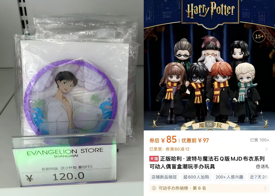 ( 需要特别指出的是,本文讨论的“谷子”一般是狭义概念,主要包括徽章、立牌、镭射票等印刷品,不包括收藏卡、毛绒玩偶、可动人偶、手办等品类。有工艺门槛的IP衍生品,价格也相对坚挺得多。 )